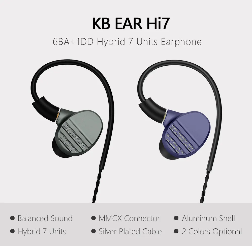 awesome KB EAR HI7 Earphone DJ in ear monitor 6BA+1DD Hybrid headset with MMCX Connector Hifi earplug