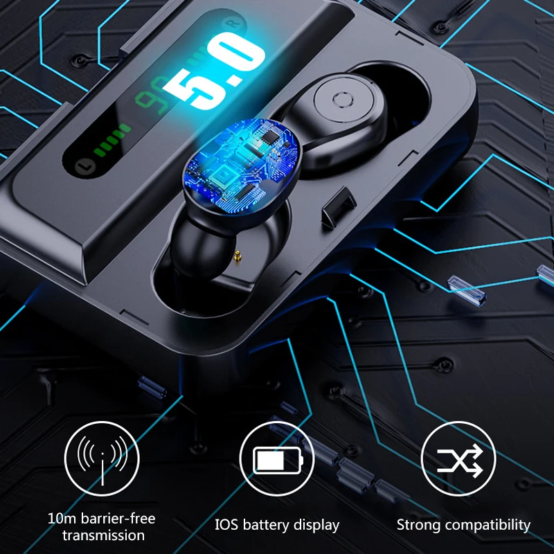 price reduction Redgiko TWS V5.0 Bluetooth Earphone 8D Stereo Wireless Headphones Sport Wireless Earbuds With LED 1