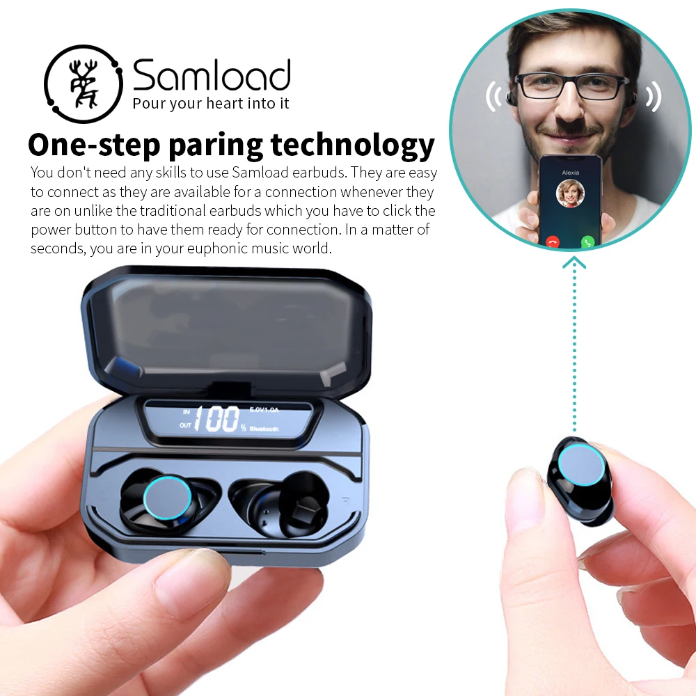 Bluetooth 5.0 Earphone True Wireless EarBuds IPX7 Waterproof Stereo Headset 2000mAh Power Bank Phone Charge For iPhone 6s 7 Sony,Samload True Wireless Stereo Headphone IPX7 Waterproof Bluetooth 5.0 Earphone Deep bass In-Ear Earbud with 2600mAh Charging Box, Samload True Wireless Stereo Headphone IPX7 Waterproof Bluetooth 5.0 Earphone Deep bass In-Ear Earbud with 2600mAh Charging Box